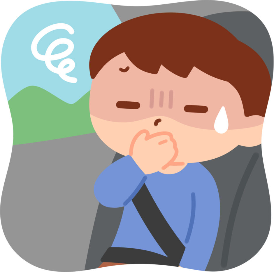 | I got carsick. | アイガットカーシック | 「私は車酔いをしました」 | 車酔いしたときに使える表現です。 |